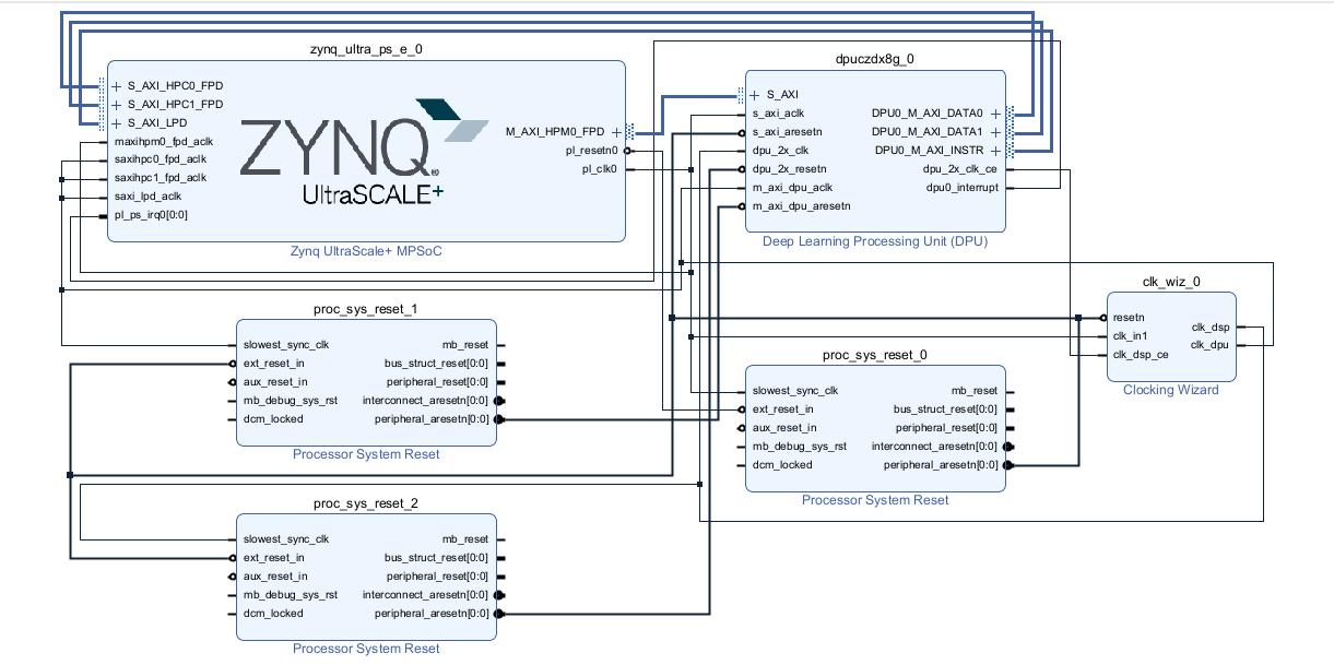 You can see from the image below that I have created a basic block design for the DPU. In the future I need to add MIPI support and DisplayPort output, but for the initial testing of the Vitis AI libraries I felt it was probably best to start off simple.