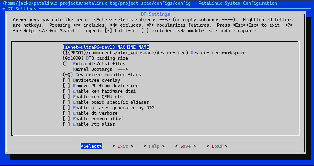 You will also want to set the machine name in the device tree settings to ensure compatibility with the Ultra96-V2 board.