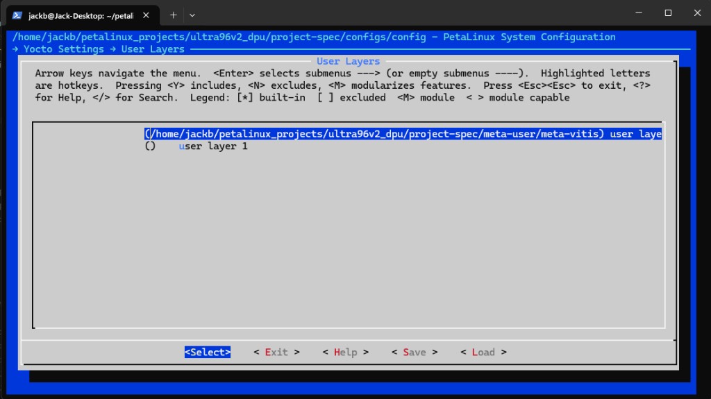 Then, in petalinux-config, add meta-vitis as a user layer: